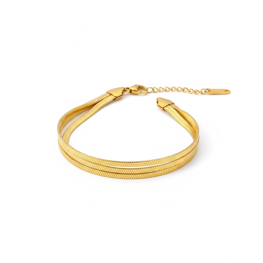 Experience the fluid grace of the Tri Bracelet, featuring three seamless layers of high-shine gold that drape the wrist in liquid luxury.